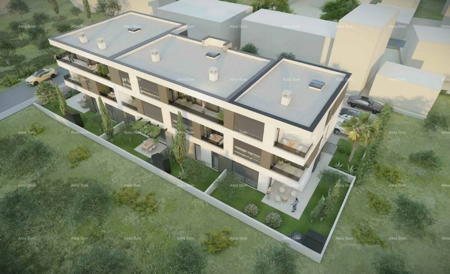 U cijenu su uključeno 2 parkirna mjesta površine 12,5m2, 12,5m2 (reducirane površine 2,5m2, 2,5m2) i spremište 2,75m2 (1,38 m2).