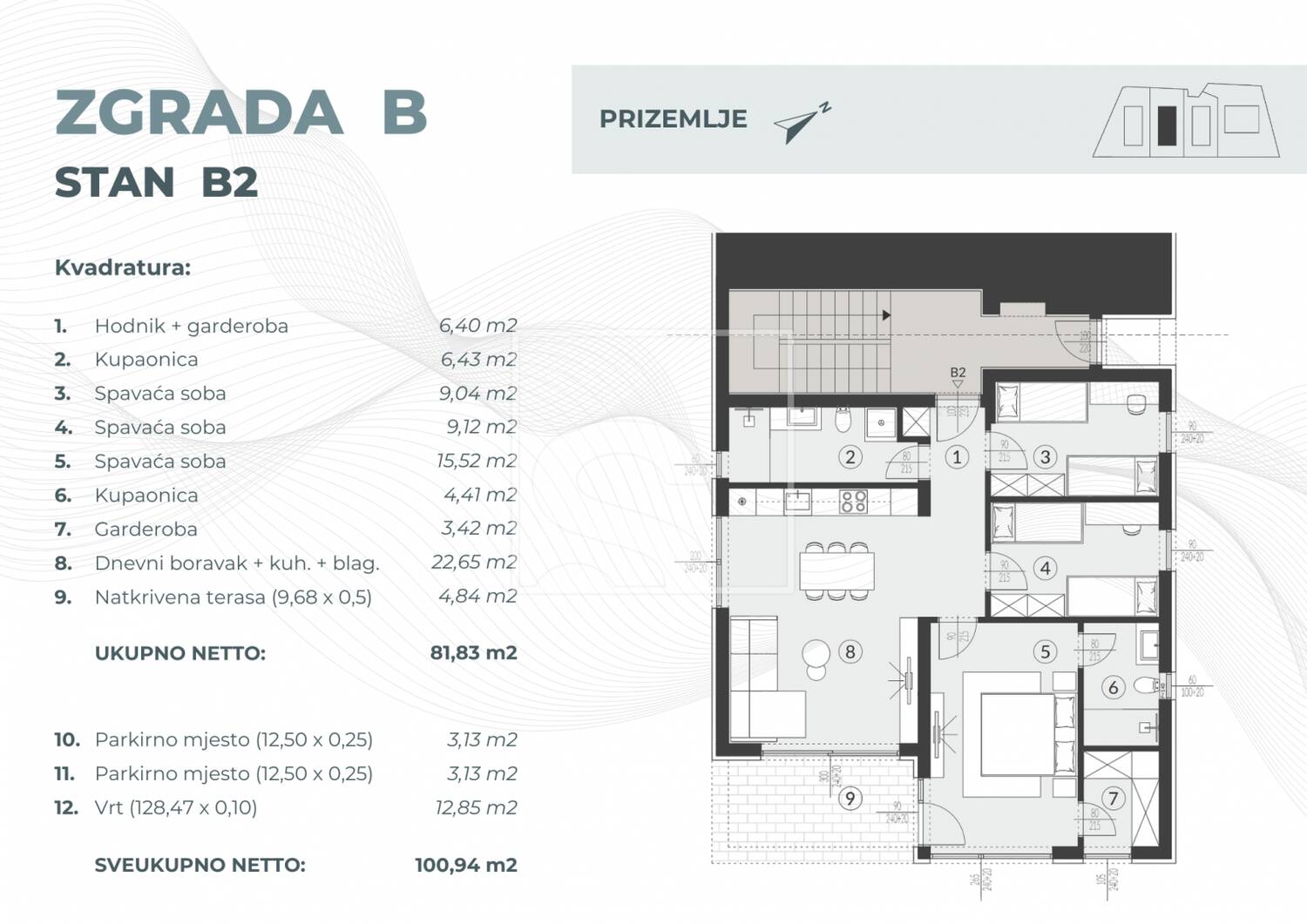 Stan s dvorištem i velikim zajedničkim bazenom - novogradnja