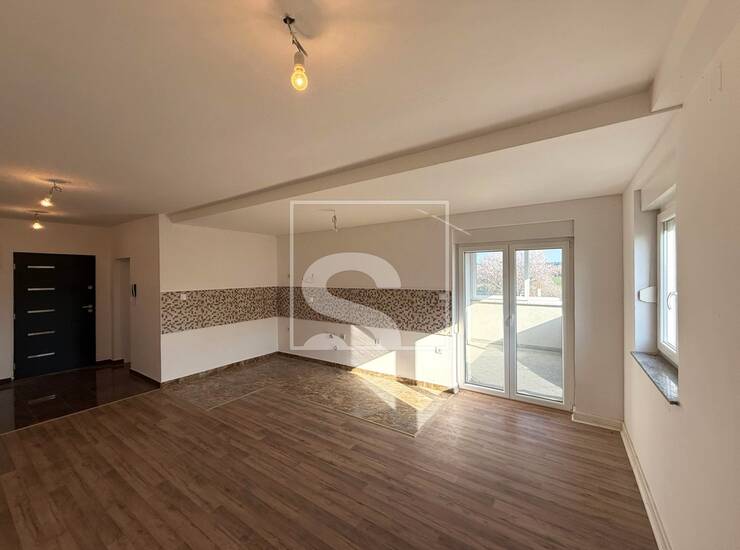 Stan se nalazi na drugom katu zgrade novije gradnje (2020g.), sastoji se od ulaznog prostora (hodnika), dodatnog manjeg hodnika koji odvaja spavaće sobe i dnevni dio, dvije prostrane i osunčana spavaće sobe (od kojih jedna ima izlaz na zatvorenu terasu), lijepe i komforne kupaonice te velikog dnevnog dijela u kojem je smještena kuhinja s blagovaonicom te dnevni boravak s izlazom na zatvorenu terasu.