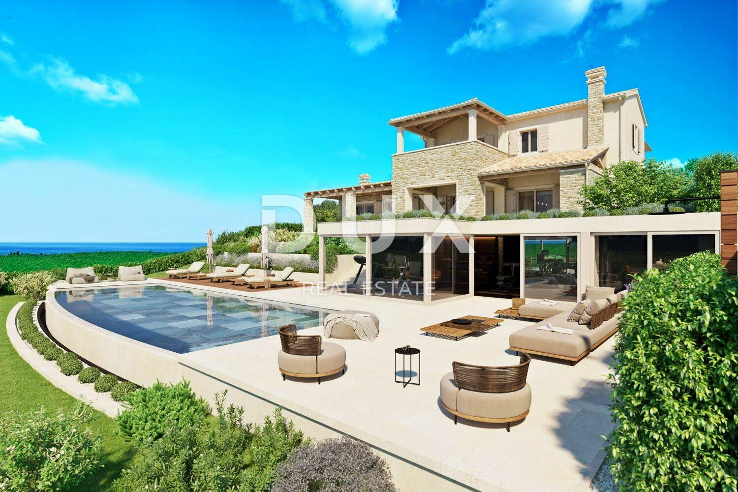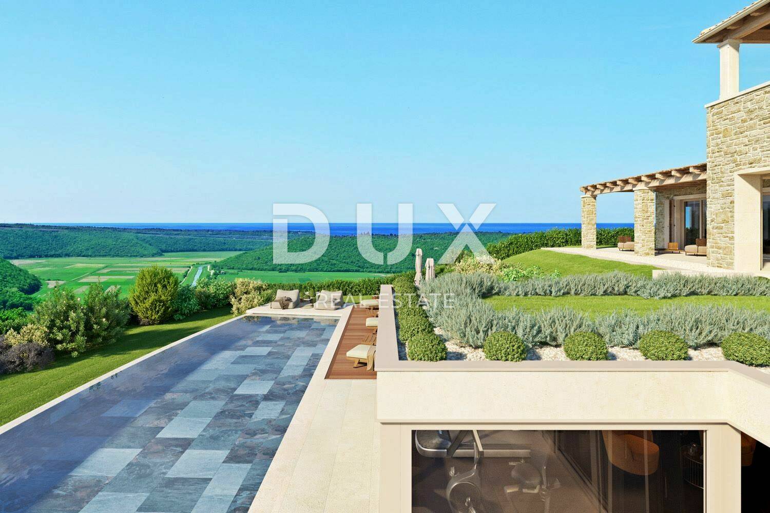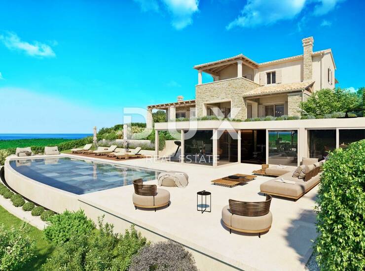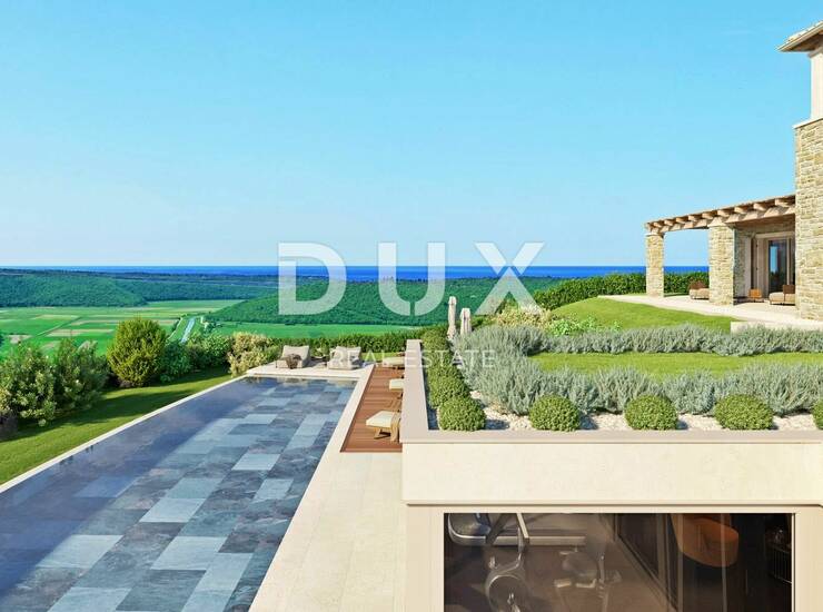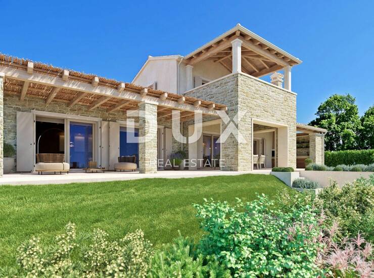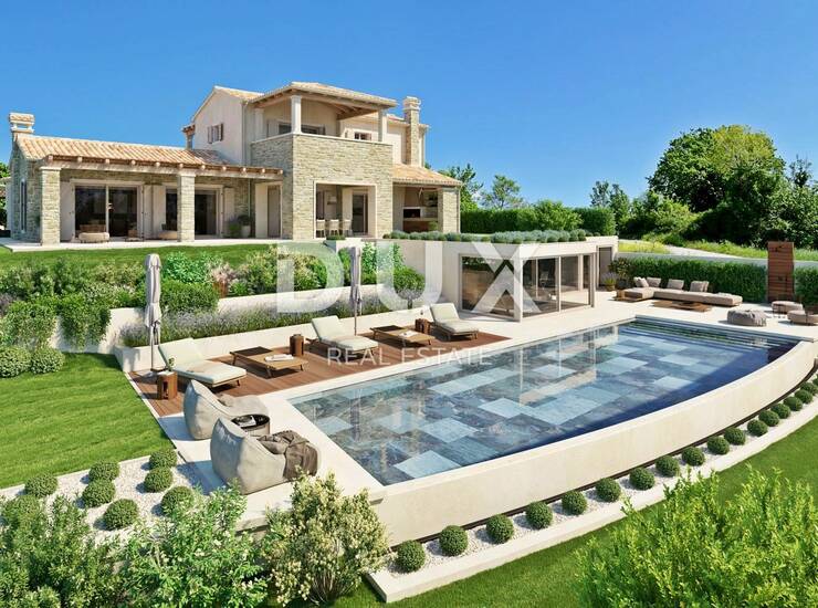 Prodaje se prekrasna vila u autohtonom stilu na površini od 1736 m2 jedinstvene lokacije, okružena maslinicima te panoramskog pogleda na more, dolinu rijeke Mirne i zelenilo.