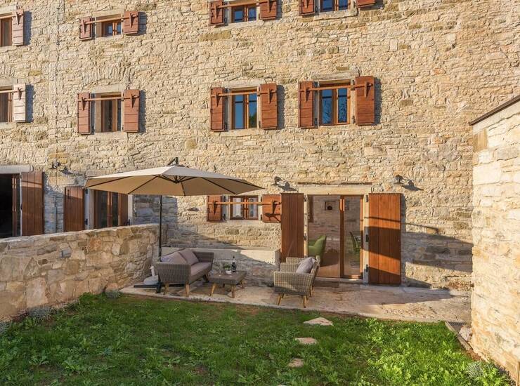 Na samo 3 km od predivnog Grožnjana smjestilo se ovo prostrano imanje sa 5 stambenih jedinica smještenih na okućnici veličine 3360m2.