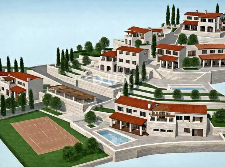 U okolici tog romanesknog srednjovjekovnog gradića u nevjerojatno mirnom i spokojnom mjestašcu, okruženo terasama maslinika i vinograda, na prodaju je građevinsko zemljište na osami s panoramskim pogledom.