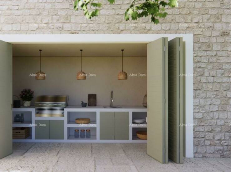 Smješteno na povišenoj lokaciji iznad guste šume, zemljište pruža nesmetan panoramski pogled na Jadransko more te je okruženo prirodom, što jamči mir i potpuni užitak u okruženju.