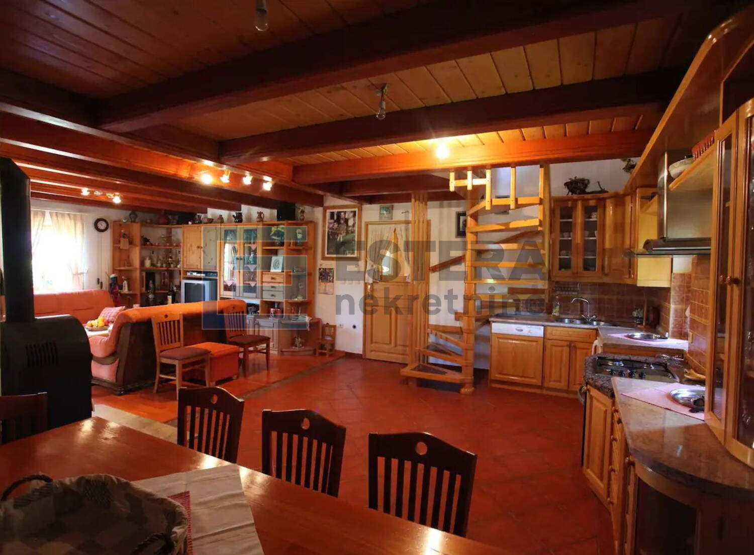 Potkrovlje se sastoji od: tri opremljene spavaće sobe i kupaonice (kada) sa wc-om. Cijeli stambeni dio je klimatiziran, drvena stolarija, struja, voda, priprema za centralno grijanje, kao i mogućnost priključka telefona. Uz nekretninu se nalazi pomoćni objekt veličine 70 m2 koji se sastoji od kupaonice s WC-om, ljetne kuhinje, ostave, strojarnice i sunčališta.