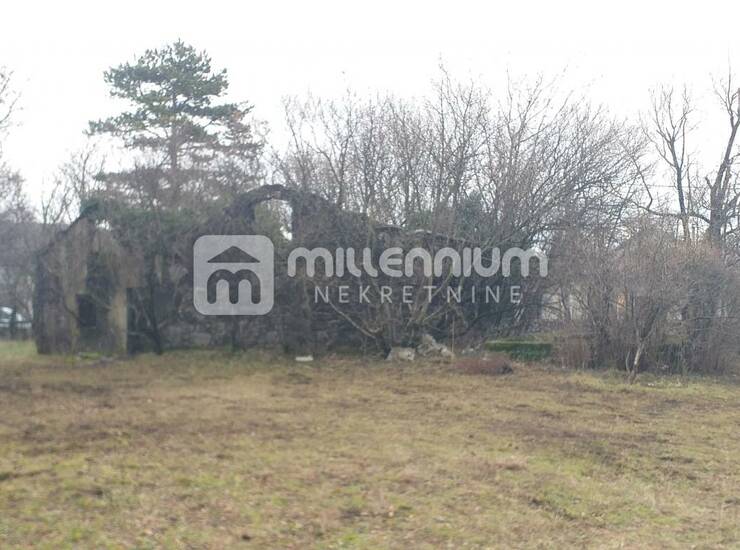 Ravan građevinski teren s ruševinom od 3.567m2 omeđen suhozidom i zidom s priključcima struje i vode u neposrednoj blizini.
