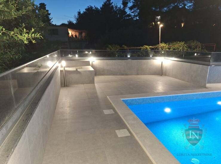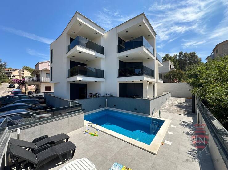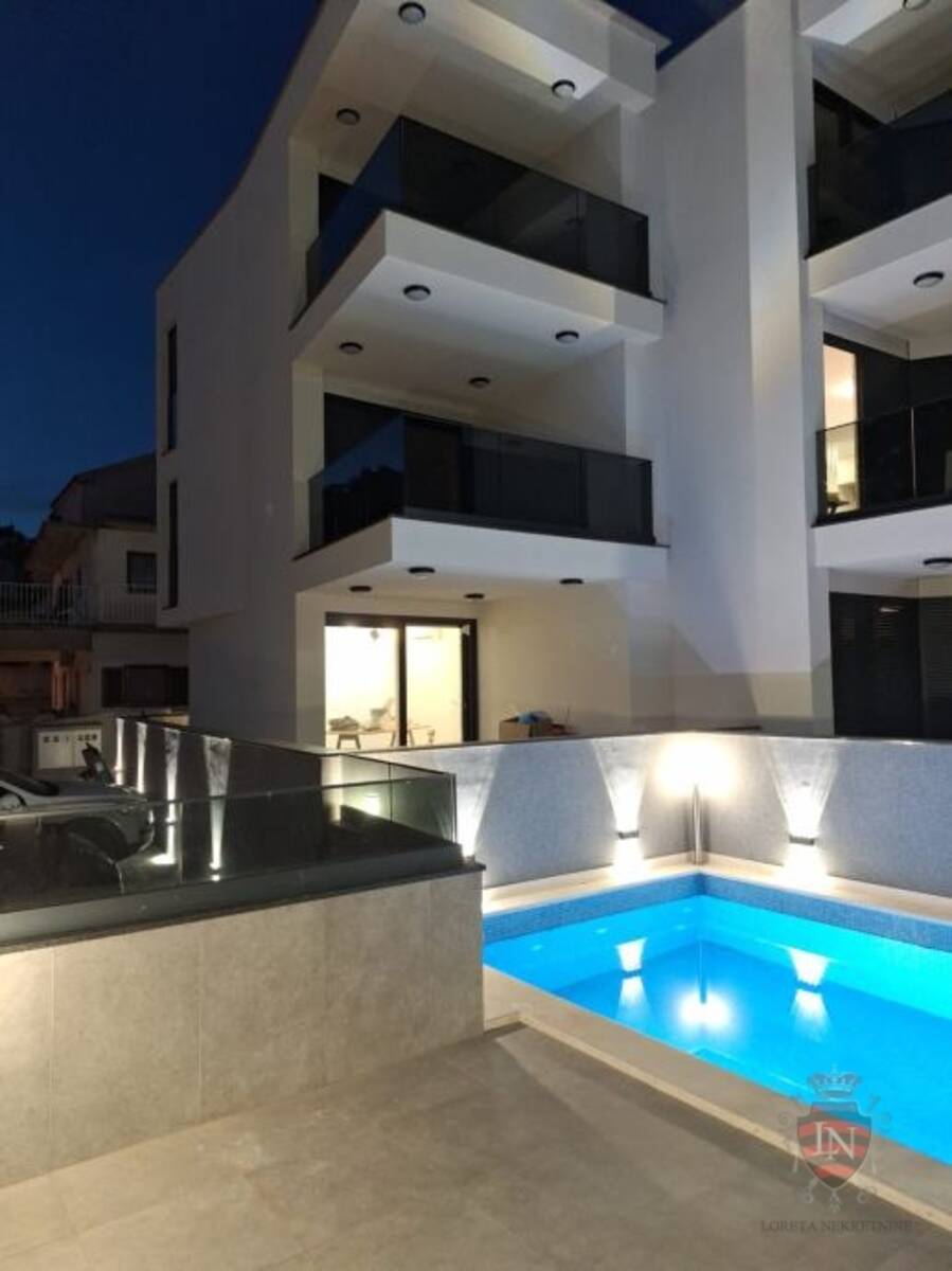 Stanu pripada jedno parkirno mjesto (etažirano uz stan), zajednički bazen i sunčalište, zajedničko spremište od 10m2, te jedno zajedničko parkirno mjesto (zajedničko sa ostalih 5 stanova).