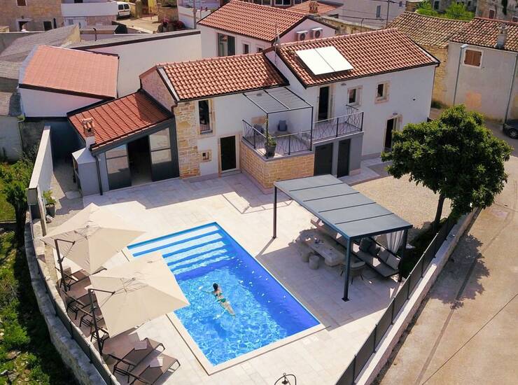 Ova prekrasna autohtona vila osvaja na prvi pogled spojem tradicije - kamena i drveta te modernog dizajna sa ravnim i čistim linijama. U potpunosti je adaptirana 2017. godine, a sastoji se od prizemlja i kata. Ulazom u pr