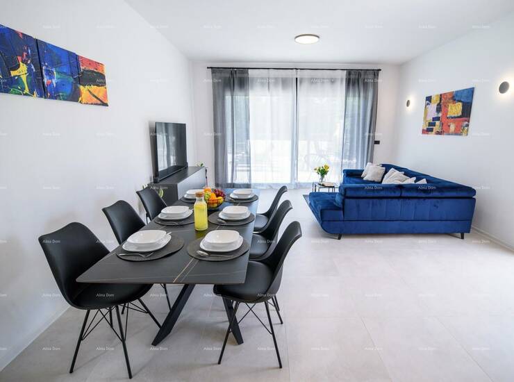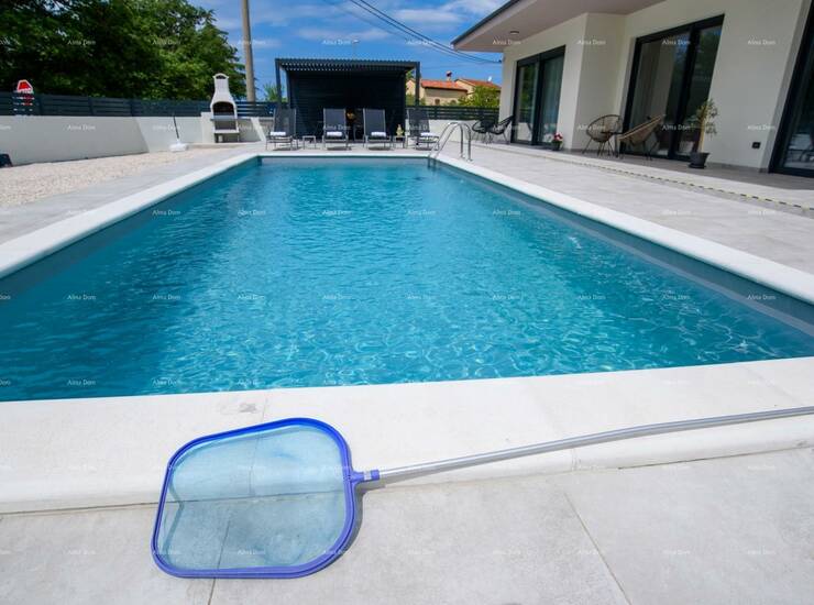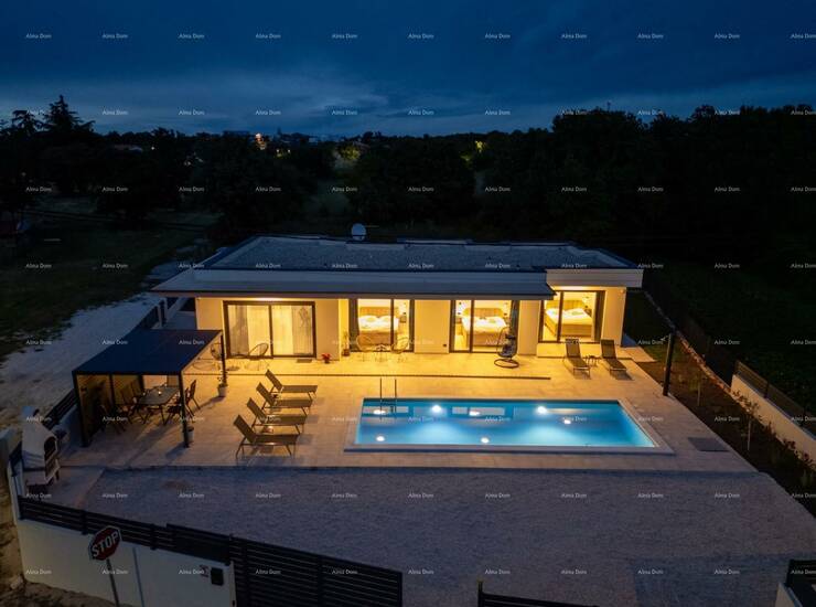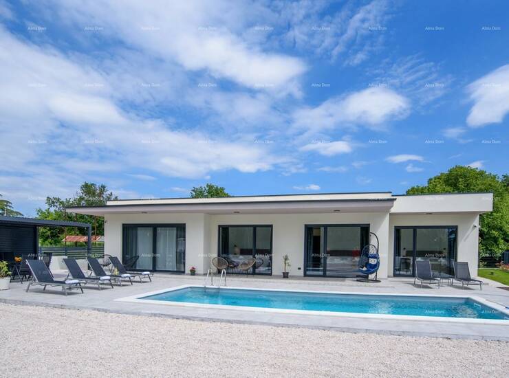 Na prodaju je moderna i elegantna vila prizemnica s bazenom, stambene površine 135 m², smještena na uređenoj i ograđenoj parceli od 614 m². Nekretnina je u potpunosti namještena, funkcionalna i odmah useljiva, a trenutno je uspješno uhodana za turistički najam.