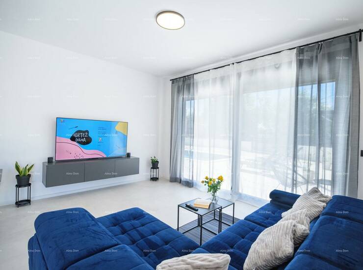 Nekretnina je opremljena klima uređajima i podnim grijanjem, što omogućuje ugodan boravak tijekom cijele godine. Interijer je suvremeno uređen, s pažljivo biranim detaljima i kvalitetnim materijalima.