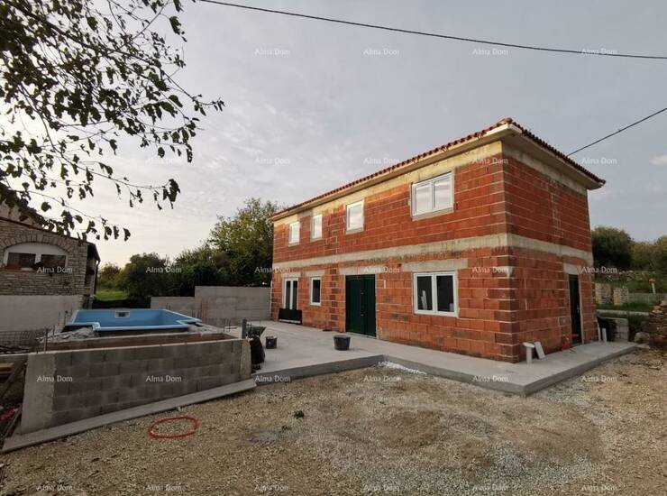 Prodaje se kuća u visokoj fazi gradnje, blizu Kanfanara. Stambena površina kuće iznosi 160 m², a sastoji se u prizemlju od: