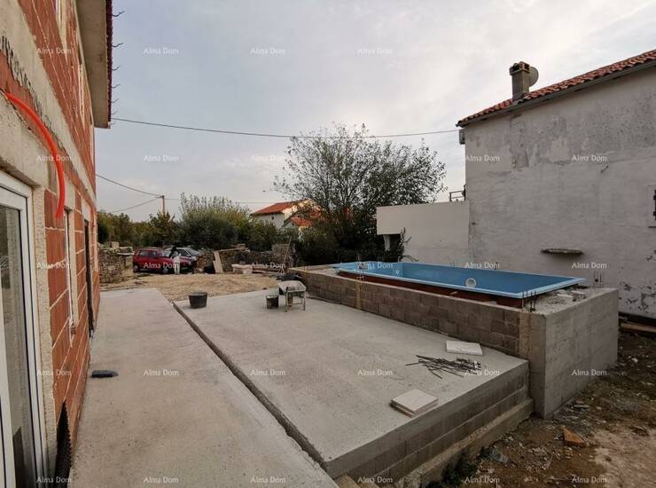 Prodaje se kuća u visokoj fazi gradnje, blizu Kanfanara. Stambena površina kuće iznosi 160 m², a sastoji se u prizemlju od: