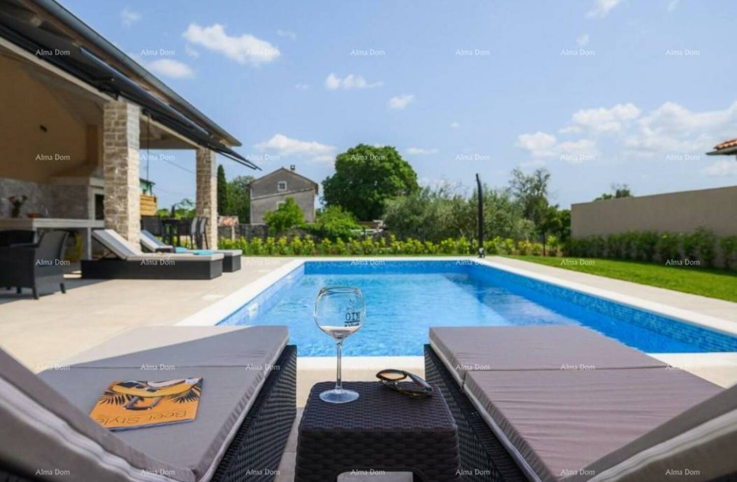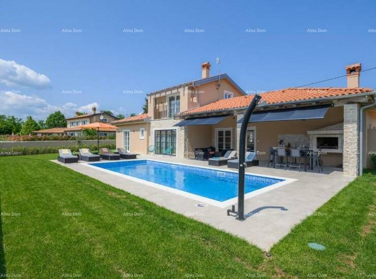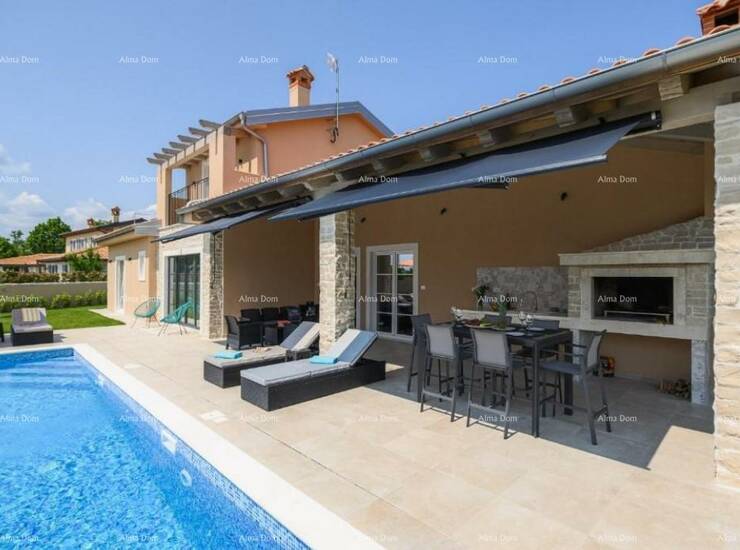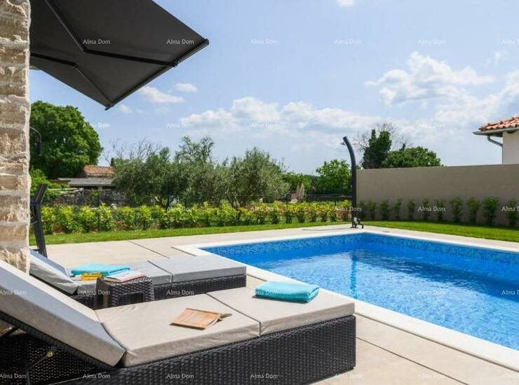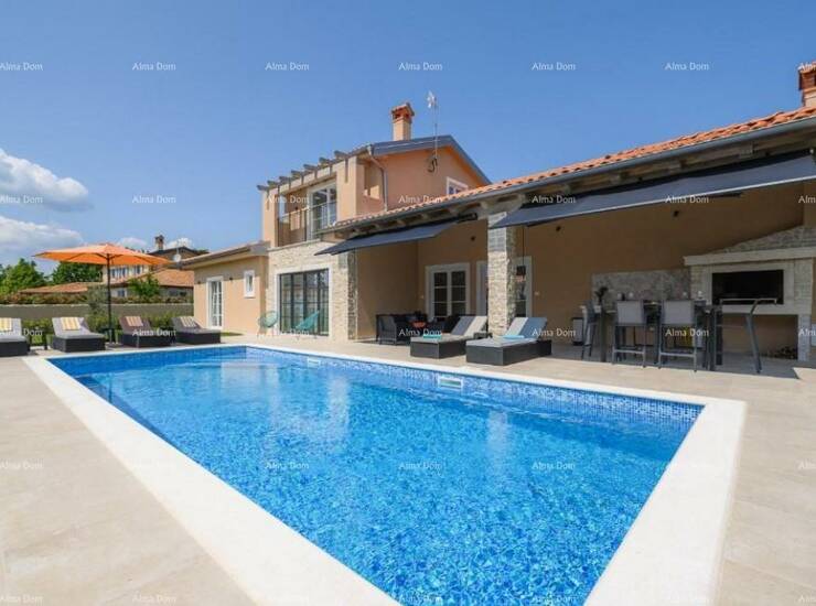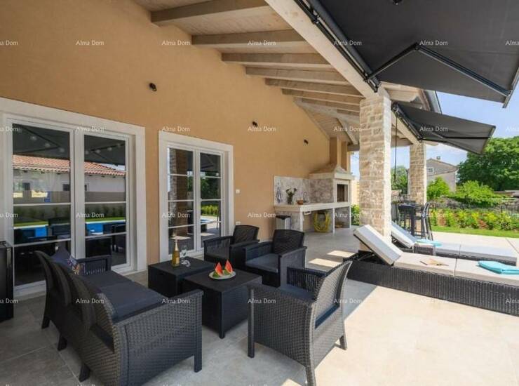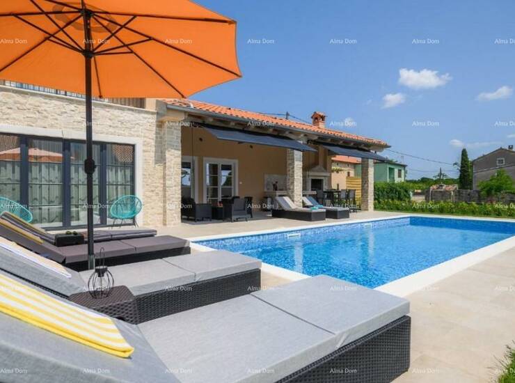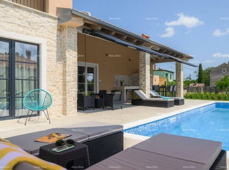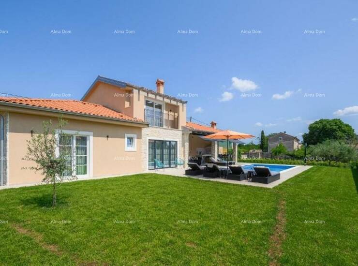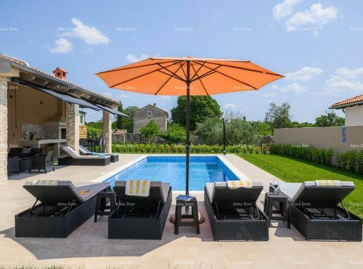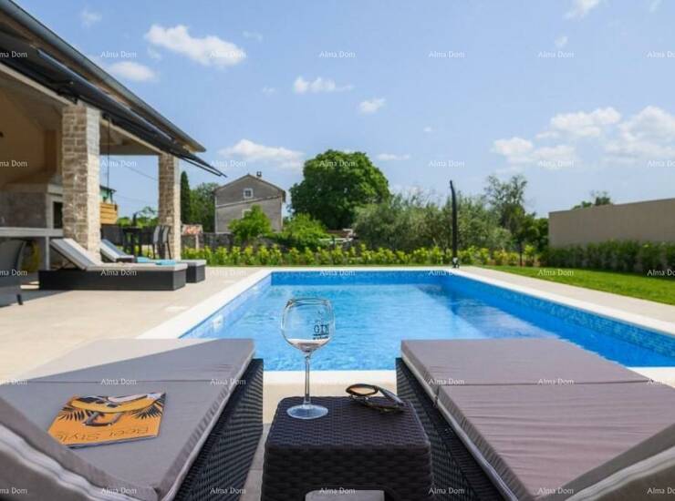 Prodaje se luksuzna moderna vila sa bazenom od 180 m2, nalazi se u malom istarskom selu, blizu Kanfanara. Ukupna površina kuće je 140 m2 stambene površine, a 40 m2 je natkrivena terasa namještena i opremljena.