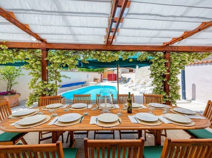 Pergola (32 m²), bazen (20 m²), kamenom popločano dvorište.