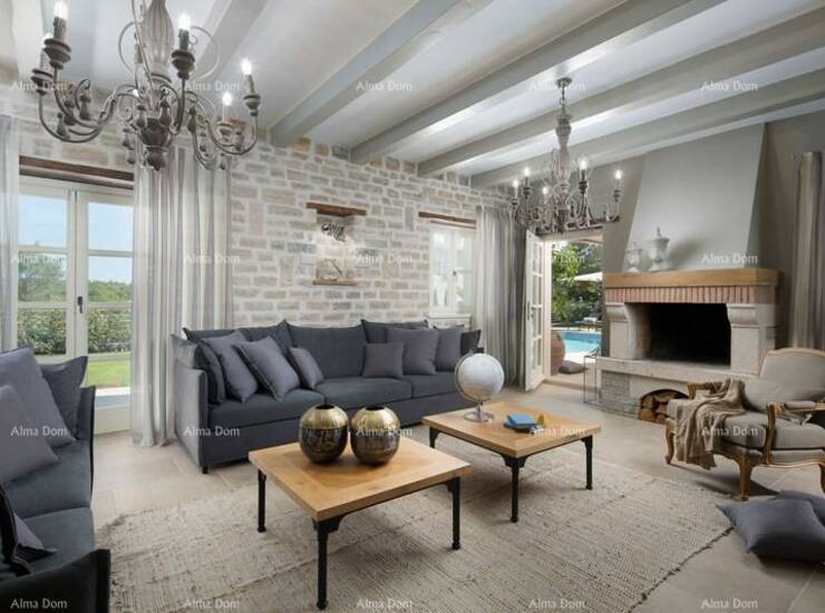 U okolici Kanfanara smjestila se luksuzna vila sa bazenom površine 359 m2 na dvije potpuno klimatizirane etaže kapaciteta 8 osoba. U prizemlju kuće nalazi se prostrani dnevni boravak sa kaminom i SAT-TV te izlazom na prostranu natkrivenu terasu sa stolom za objedovanje, kaminom za roštiljanje i lounge zonom, velika, potpuno opremljena kuhinja sa blagovaonicom, jedna dvokrevetna soba sa dvostrukim krevetom, vlastitim tuš-WC-om i izlazom na terasu, zaseban WC u dnevnom dijelu i tuš/WC na terasi.