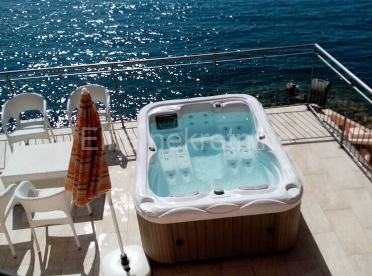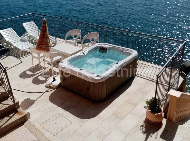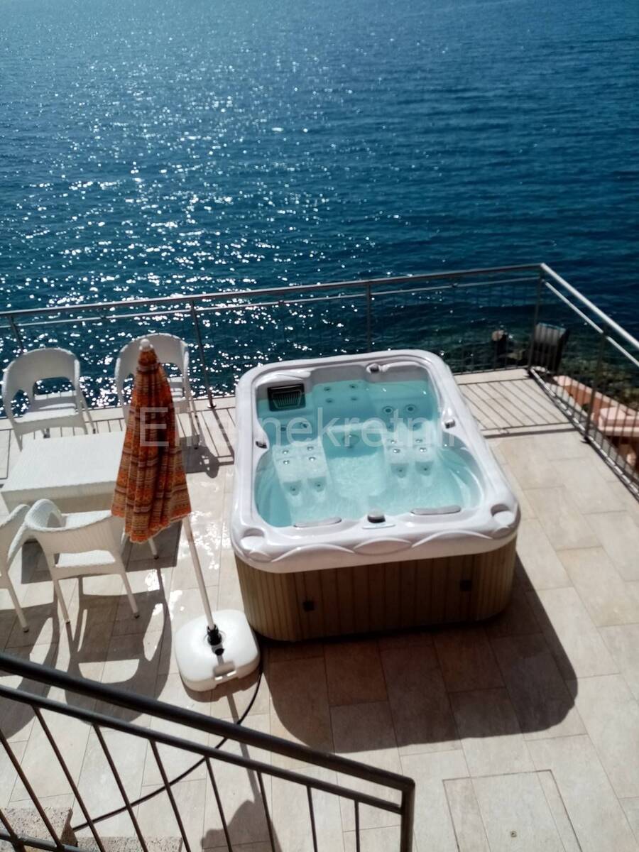 Okoliš objekta je lijepo uređen, na njemu se nalazi još jedna terasa na kojoj se smješten jacuzzi, od terase se spušta put prema moru i uređenoj plaži gdje se nalazi mali dječiji bazen i roštilj.