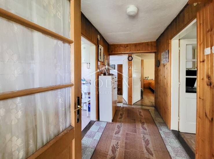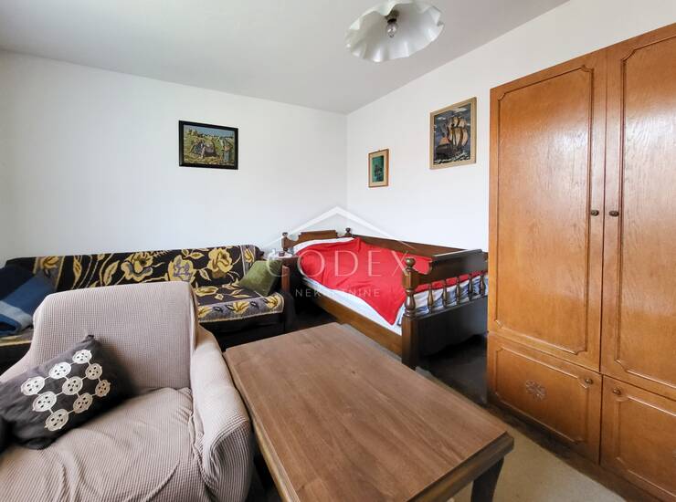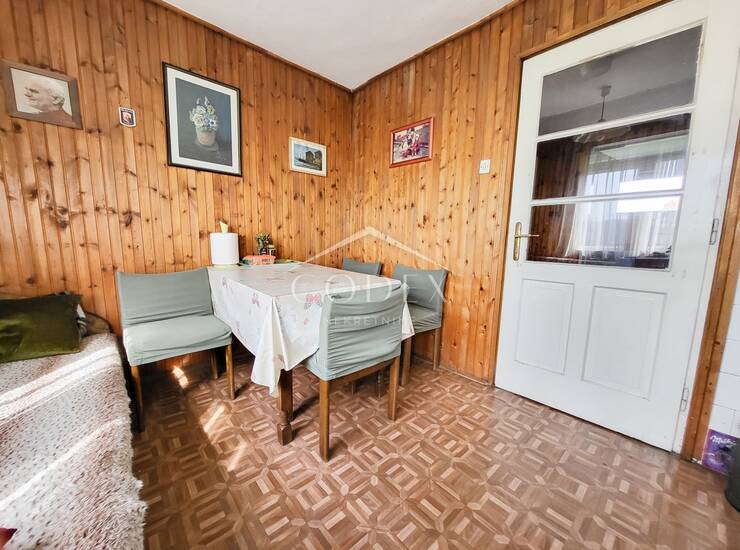 Kuća tlocrtne stambene površine 77 m² sastoji se od prizemlja koje je useljivo, ali zahtijeva određeno uređenje. Raspored uključuje hodnik, dvije sobe, kuhinju s blagovaonicom te kupaonicu s WC-om koja je već adaptirana – zamijenjene su instalacije, sanitarije i keramika, a ugrađen je i PVC prozor. U ostatku kuće nalazi se drvena stolarija. Dodatnu vrijednost nekretnini daje podrum površine 38 m², kao i tavan pune stojne visine koji prati tlocrt kuće i pruža mogućnost uređenja dodatnog stambenog prostora. Na tavanu je postavljen PVC prozor, a krov je nov.