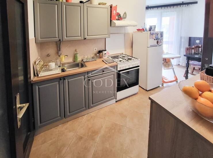 Stan je ukupne površine 48 m2, a sastoji se od jedne velike sobe, jedne manje sobe, kuhinje sa blagavaonom, kupaone s wc-om te zatvorenog balkona. Stan je djelomično adaptiran i prodaje se djelomično namješten (laminati, pvc stolarija, kuhinja).