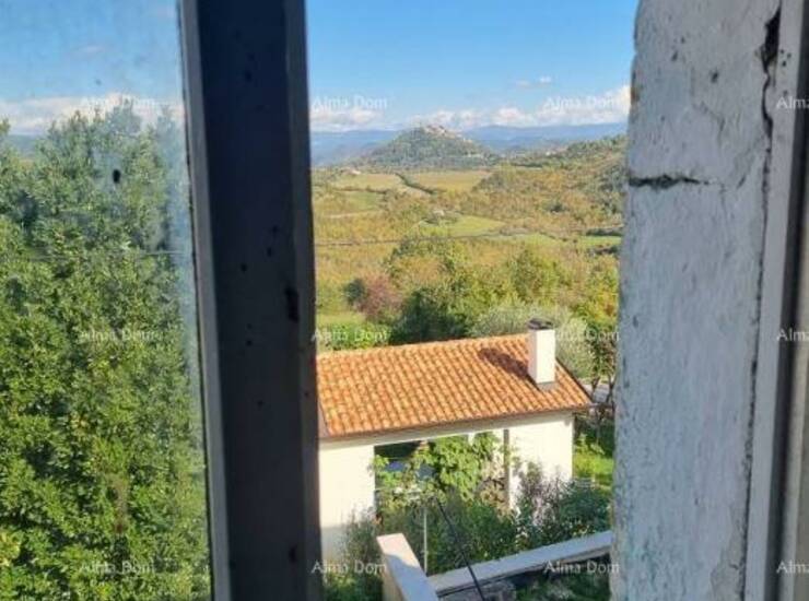 Na prodaju je starija istarska kuća smještena na zemljištu površine 1367 m², sa spektakularnim otvorenim pogledom na Motovun i okolna područja.