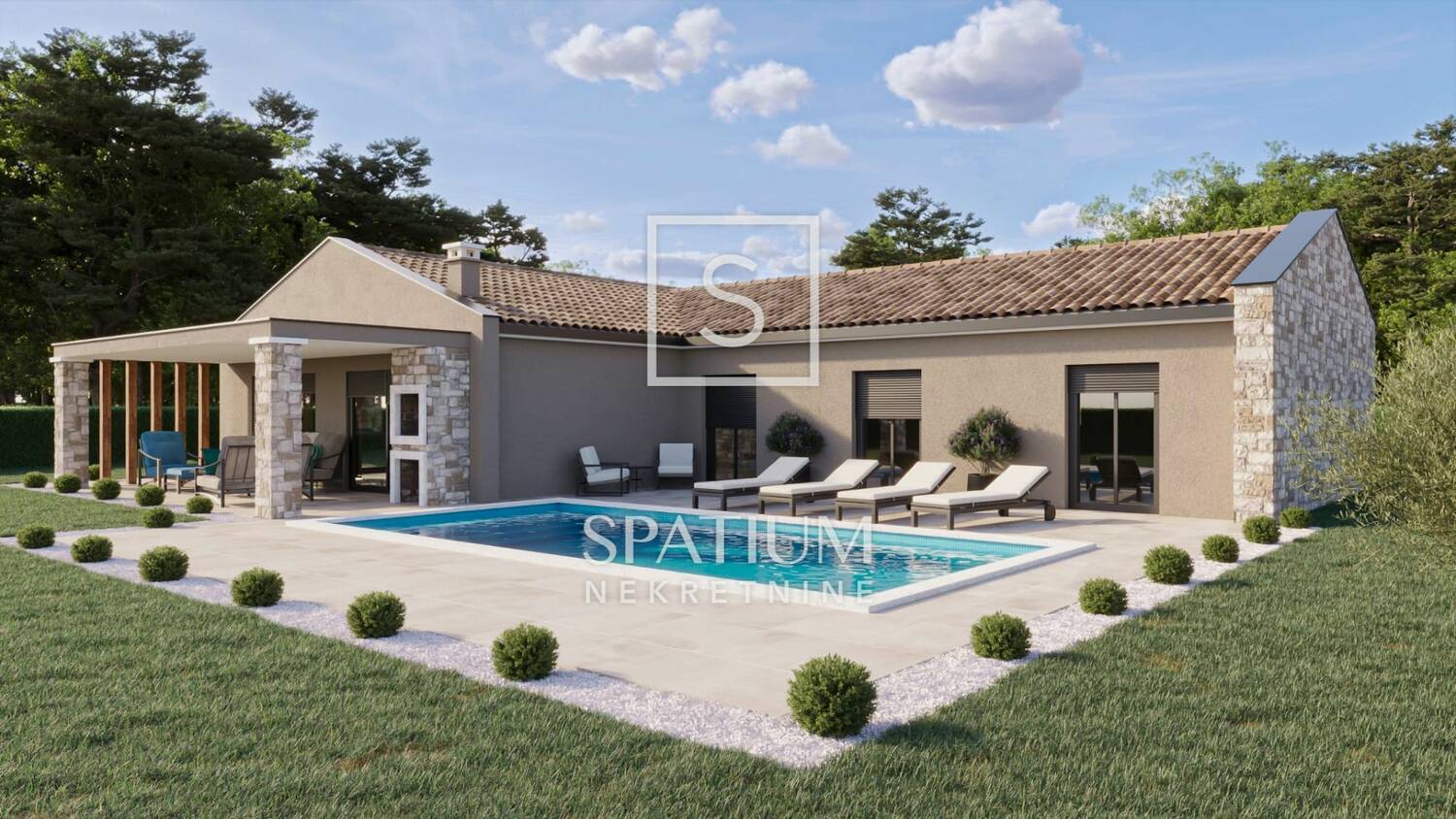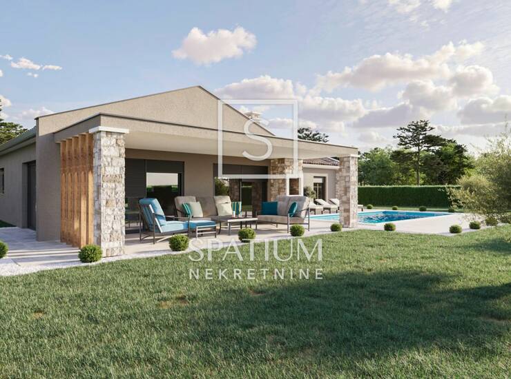 Obiteljska prizemnica sa 3 spavaće sobe, 3 kupaonice i velikim otvorenim dnevnim boravkom, kuhinjom s blagovaonicom.