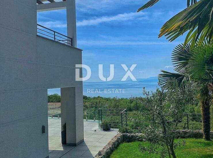 Villa / kuća je južno orijentirana s velikim staklenim stijenama na svim prostorijama na južnoj strani, tako da se iz tih prostorija pruža panoramski pogled na cijeli Kvarnerski zaljev.