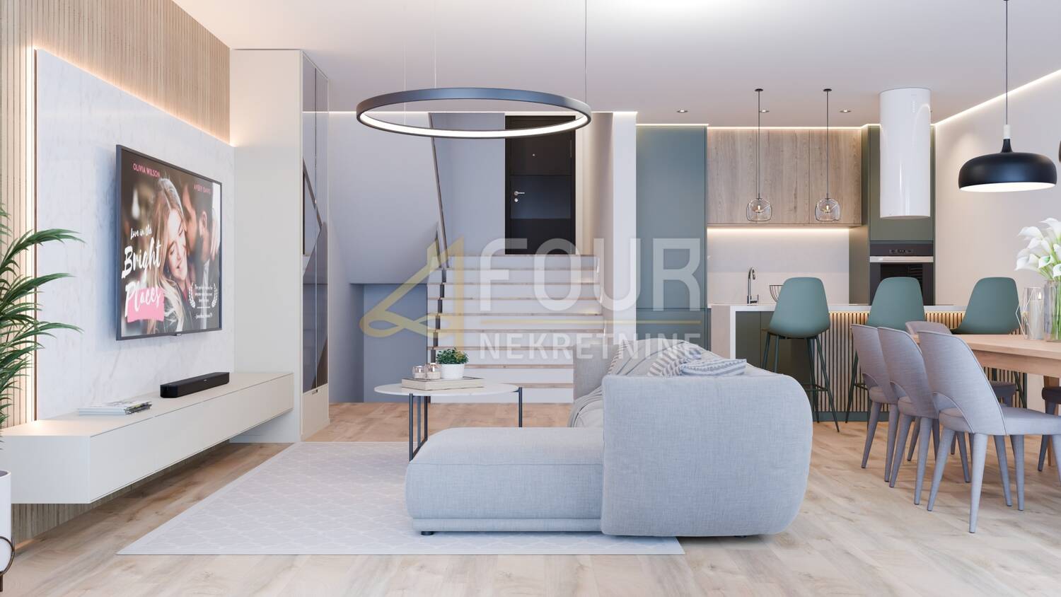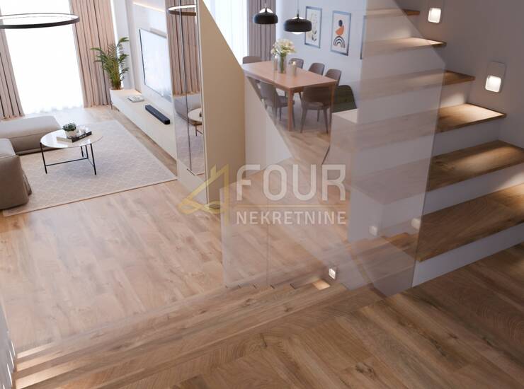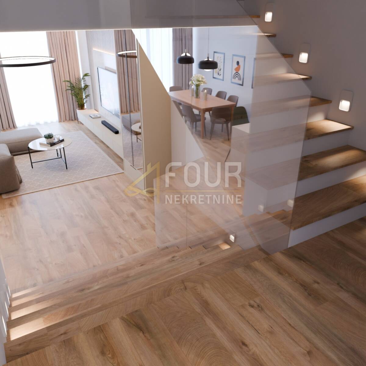 Kuća se prostire na četiri etaže, suteren, prizemlje i dva kata, ukupne površine 218,31 m2, uz pripadajuću okućnicu od 70 m2 koja pruža dodatni prostor za opuštanje i boravak na otvorenom. U vlasničkom smislu čini jednu stambenu jedinicu koncipiranu kao trosoban stan s dnevnim boravkom, pažljivo osmišljenog rasporeda koji osigurava maksimalnu funkcionalnost i udobnost.