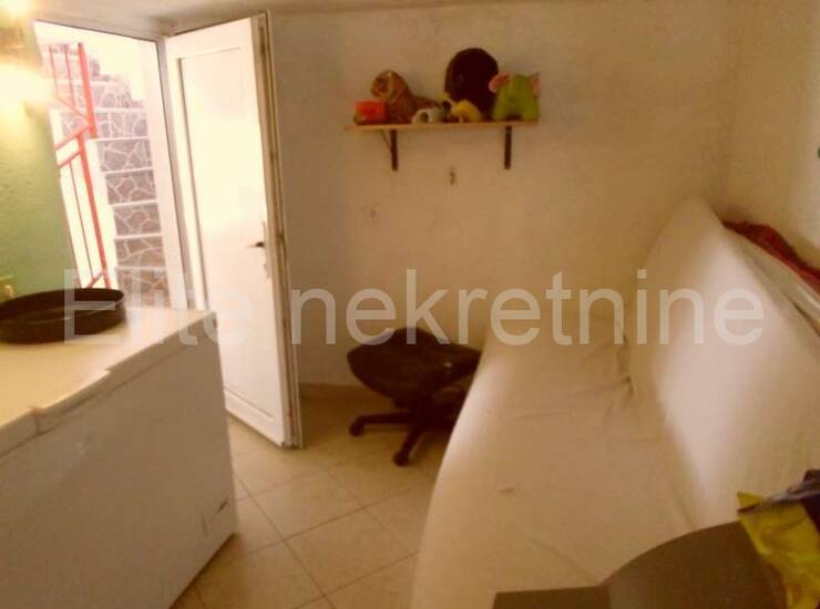 Na prvom katu smjestio se komforni dvosobni stan, nedavno preuređen, veličine 100 m2. Sastoji se od dvije spavaće sobe, prostranog dnevnog boravka, kuhinje s blagavaonom i kupaone.Međukat nudi studio apartman/garsonijeru koja može poslužiti kao nekretnina za turistički najam. Sastoji se od jedne sobe, male kuhinje i kupaonice.