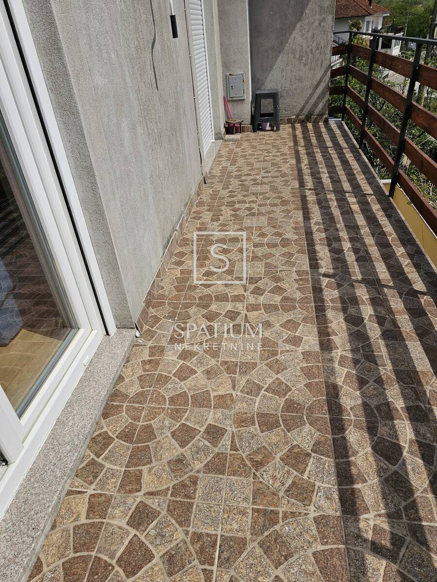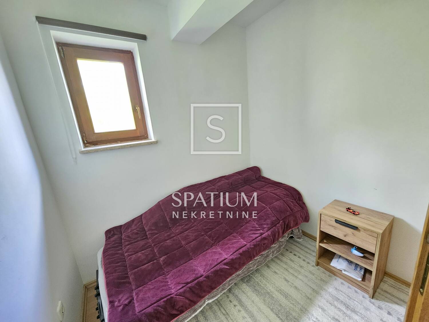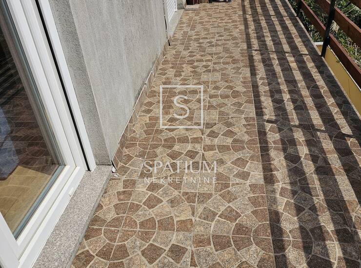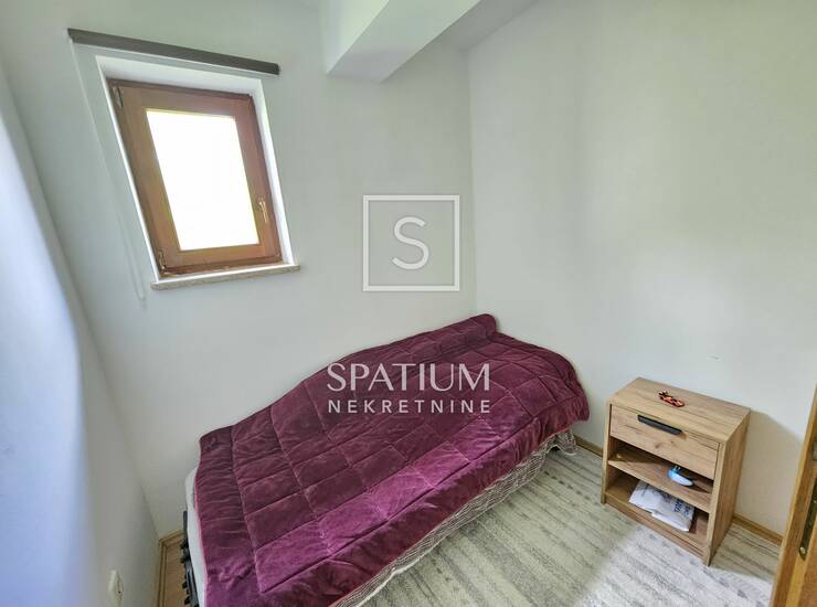 Stan na katu, površine 118 m², sastoji se od ulazne verande, kuhinje s dnevnim boravkom s izlazom na prostranu terasu, hodnika, dvije spavaće sobe, kupaonice te dodatne manje prostorije koja se, prema željama budućih vlasnika, može urediti kao spavaća soba, radna soba ili ostava.