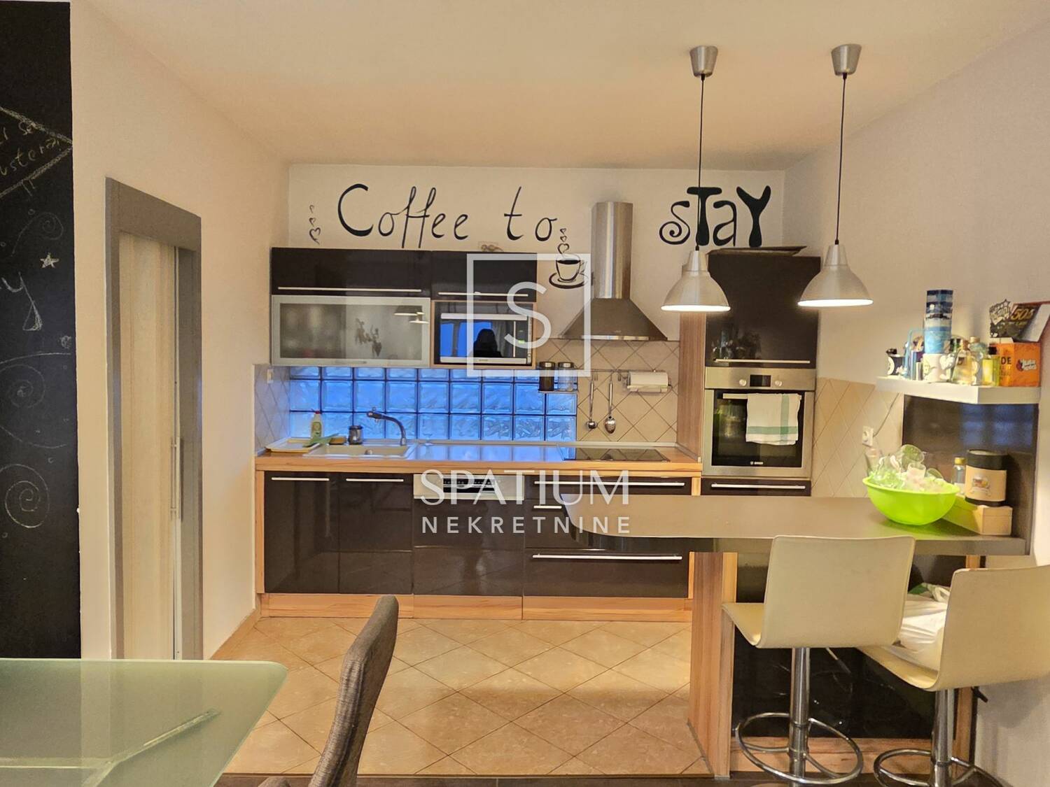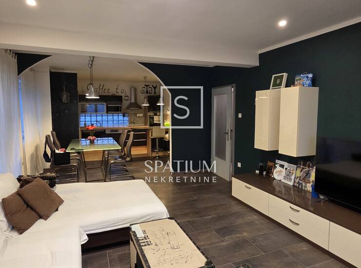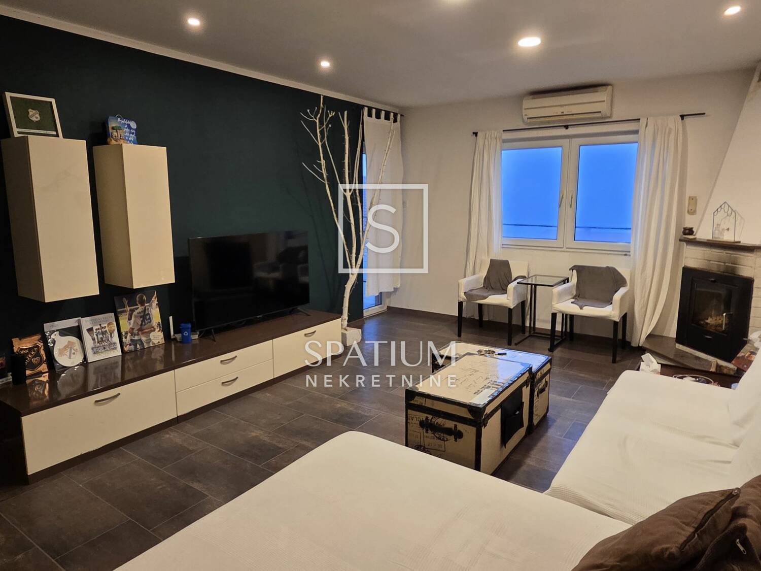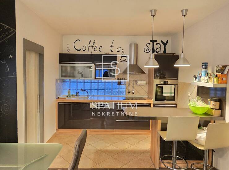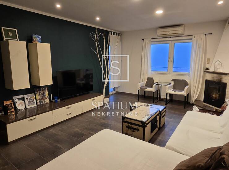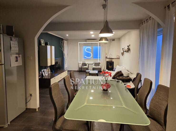 Na katu se nalazi potpuno uređen dvoetažni stan površine 110 m², koji se sastoji od: