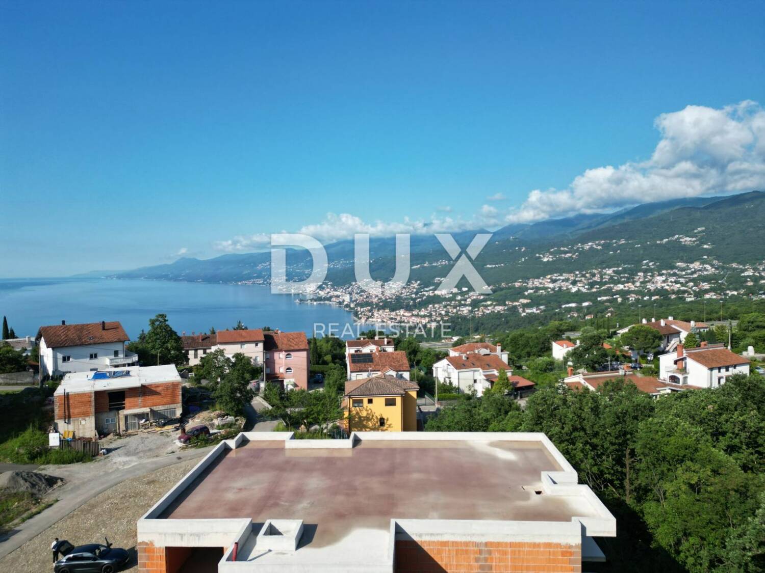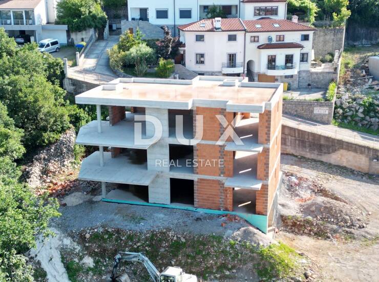 MATULJI, KASTAV, RUBEŠI- zgrada u izgradnji 600m2 sa 3 prostrana stana s panoramskim pogledom na more i podzemnom garažom + okoliš 900m2