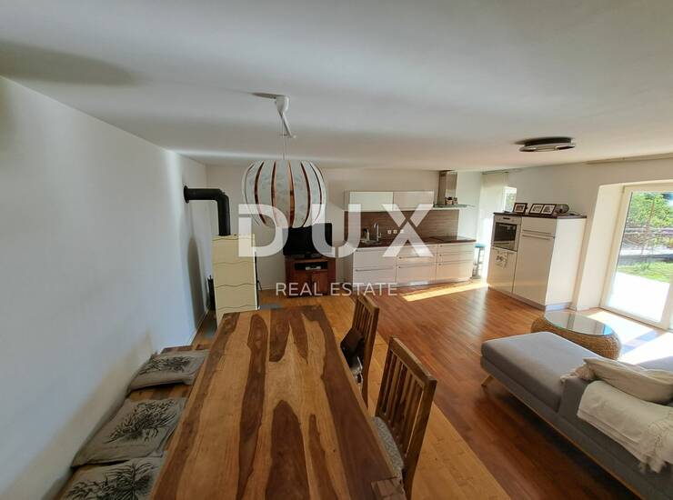 Na samo 6 kilometara od Opatije, elitnog primorskog gradića poznatog po elegantnim vilama, predivnim parkovima i šetnici uz more — idealnog mjesta za odmor i život — nudimo vam prekrasnu, novouređenu obiteljsku kuću s očaravajućim pogledom na more. Jedinica dvojne kuće smještena je u mirnom stambenom naselju, udaljenom samo 10 minuta lagane vožnje automobilom od mora.