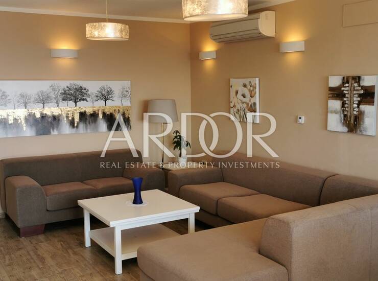 Stan je funkcionalnog i modernog rasporeda. Sastoji se od ulaznog hodnika koji vodi u prostrani dnevni boravak povezan s blagovaonicom i kuhinjom, stvarajući ugodan i otvoren prostor idealan za obiteljski život i druženja. Kupaonica je moderno uređena, dok su degažmanom odvojene tri spavaće sobe te dodatni WC, čime je osigurana privatnost i praktičnost.