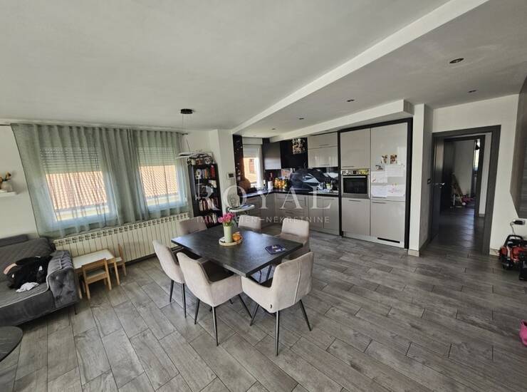 Na prodaju je iznimno komforan stan ukupne površine 103 m², smješten na prvom katu kvalitetne novogradnje, sa zasebnim ulazom koji osigurava mir i privatnost, gotovo kao u kući.