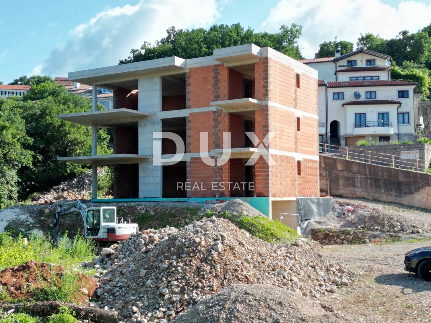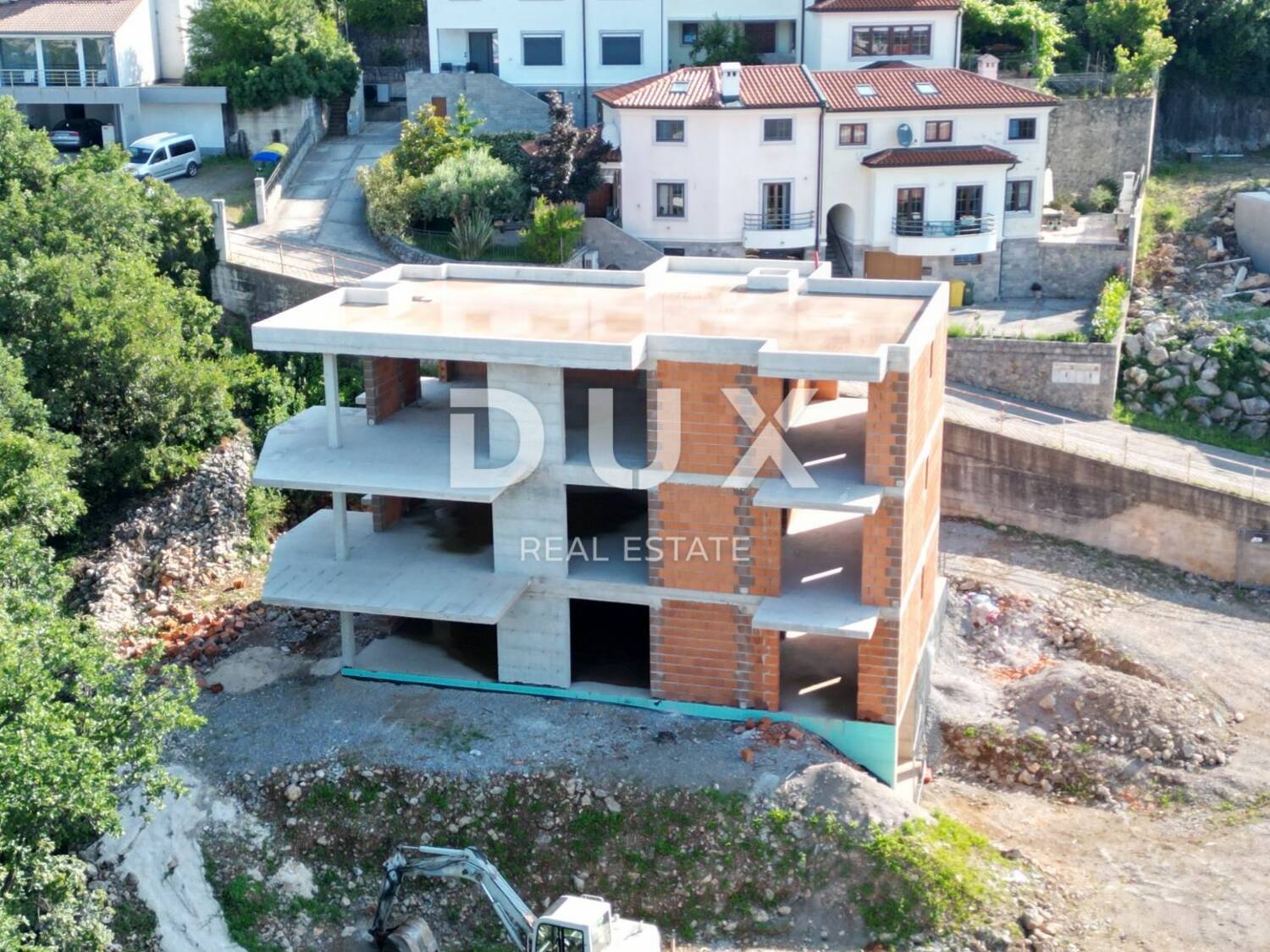 MATULJI, KASTAV, RUBEŠI- građevinsko zemljište 900m2 s zgradom u izgradnji 600m2 sa 3 prostrana stana s panoramskim pogledom na more i podzemom garažom