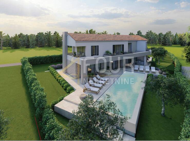 Ova nekretnina predstavlja savršen spoj mirne lokacije, moderne arhitekture i vrhunske kvalitete gradnje, udaljena svega pet kilometara od mora i oko petnaest minuta vožnje od centra Poreča.