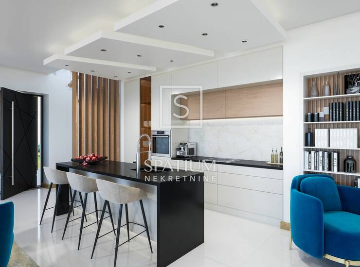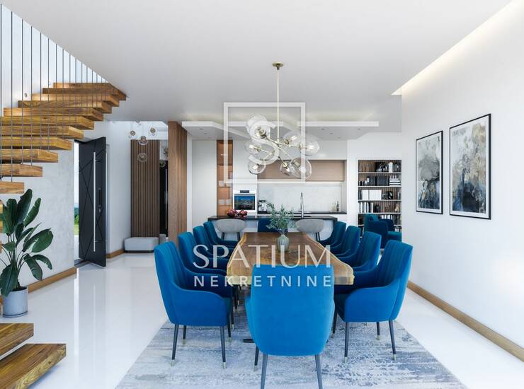 KAŠTELIR, u ponudu smo dobili luksuznu vilu modernog arhitektonskog izričaja, pažljivo projektiranu kako bi spojila suvremeni dizajn, autentične kamene detalje i drvene elemente u skladnu i funkcionalnu cjelinu.