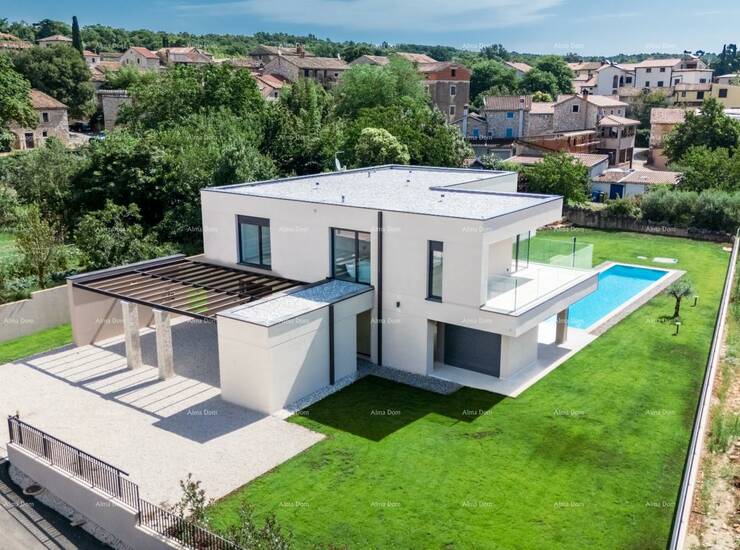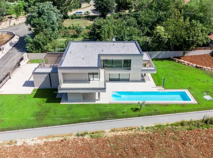 Ova moderna, luksuzna obiteljska kuća, površine 351,20 m2 (netto 303,34 m2), nalazi se na lijepoj lokaciji u neposrednoj blizini mjesta.