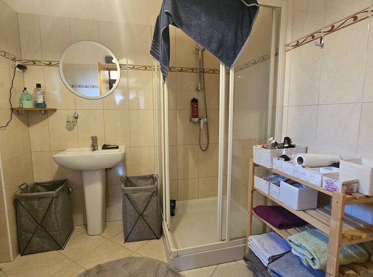 Posebna vrijednost ove nekretnine je odvojeni apartman s vlastitim ulazom, idealan za goste ili turistički najam. Apartman površine cca 70 m² uključuje spavaću sobu, dnevni boravak, garderobu, kupaonicu s tušem i WC-om te kuhinju.