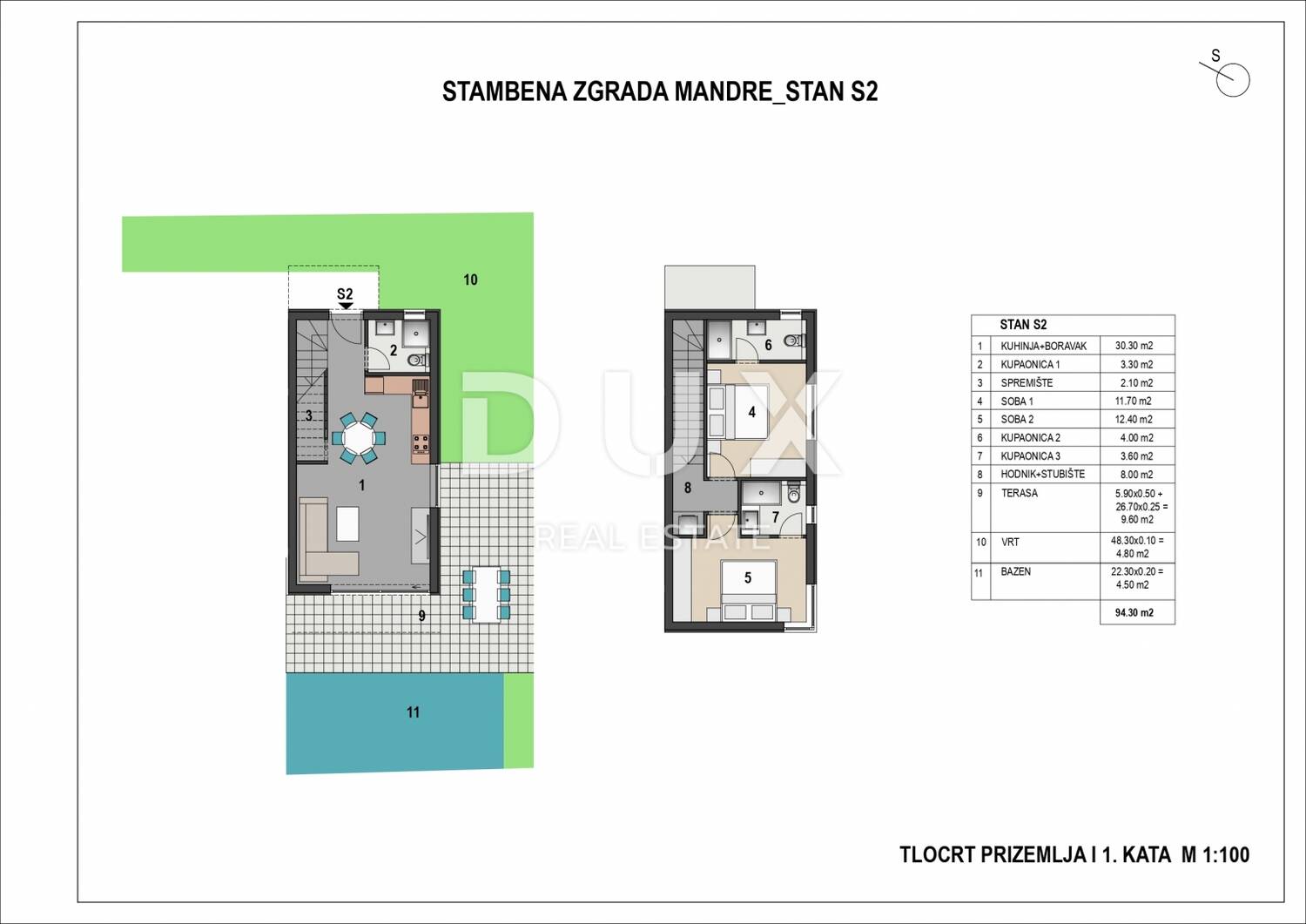 OTOK PAG, MANDRE, dvoetažni apartman s bazenom u novogradnji