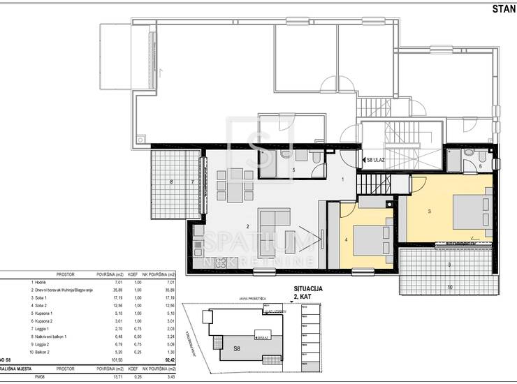 PAG, MANDRE, u ponudi je stan S8 smješten na drugom katu moderne novogradnje s ukupno osam stambenih jedinica.