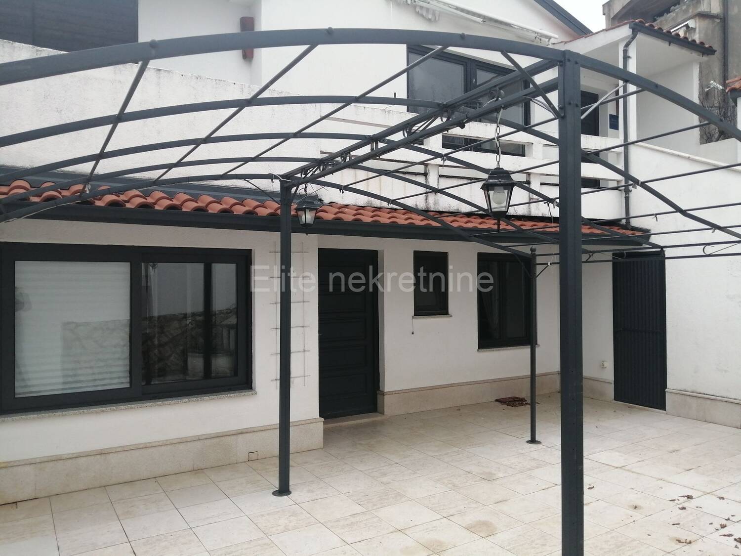 Posredujemo u prodaji prostrane, lijepe kuće na vrhunskoj lokaciji u Kostreni, okruženoj obiteljskim kućama, udaljenoj od mora i plaža svega 500-tinjak metara.Razvedena je na 2 etaže, gdje se na svakoj nalazi dvosobni stan sa dnevnim boravkom i zasebnim ulazom. Kompletno je adaptirana 2016.godine kada je provedeno centralno grijanje, postavljene nove podne podloge (egzotični parketi i keramika sa podnim grijanjem) te PVC stolarija. Na prizemlju se smjestio stan veličine 90.45 m2, sa ulaznim predprostorom, kuhinjom, dnevnim boravkom sa blagovaonicom i zimskim vrtom, 2 spavaće sobe, kupaonicom i toaletom. Prostrani dnevni boravak veličine 35 m2 nudi staklenu stijenu i kamin. Na prvom katu nalazi se stan veličine 70 m2 koji se sastoji od kuhinje, dnevnog boravka, hodnika, 3 sobe, kupaonice te toaleta. Iz dnevnog boravka se izlazi na terasu od 15 m2 na kojoj se smjestila ljetna kuhinja. Nekretnina sa oba kata nudi prekrasan pogled na more, te zbog svoje jugoistočne orijentacije osunčana je i topla tokom cijelog dana.¨Poseban ugođaj daje zatvorena veranda u staklu okružena raznim drvećem. Ispred kuće smjestila se velika terasa od 40 m2 te mali vrt.Kuća sa puno potencijala, vrijedna svake pažnje!