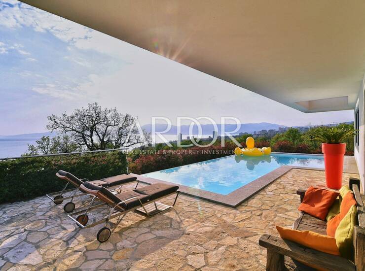 Kostrena, moderna villa 1. red do mora, sa bazenom