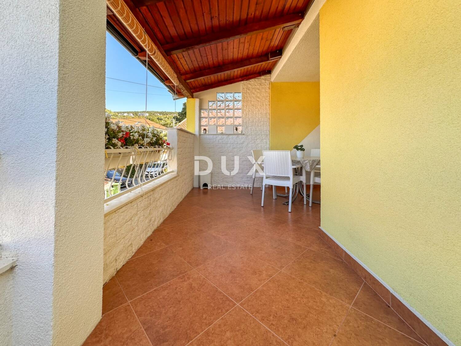 Jedan od najvećih aduta kuće zasigurno je velika natkrivena terasa na katu, idealna za druženja s obitelji i prijateljima ili uživanje na otvorenom tijekom toplih dana.
