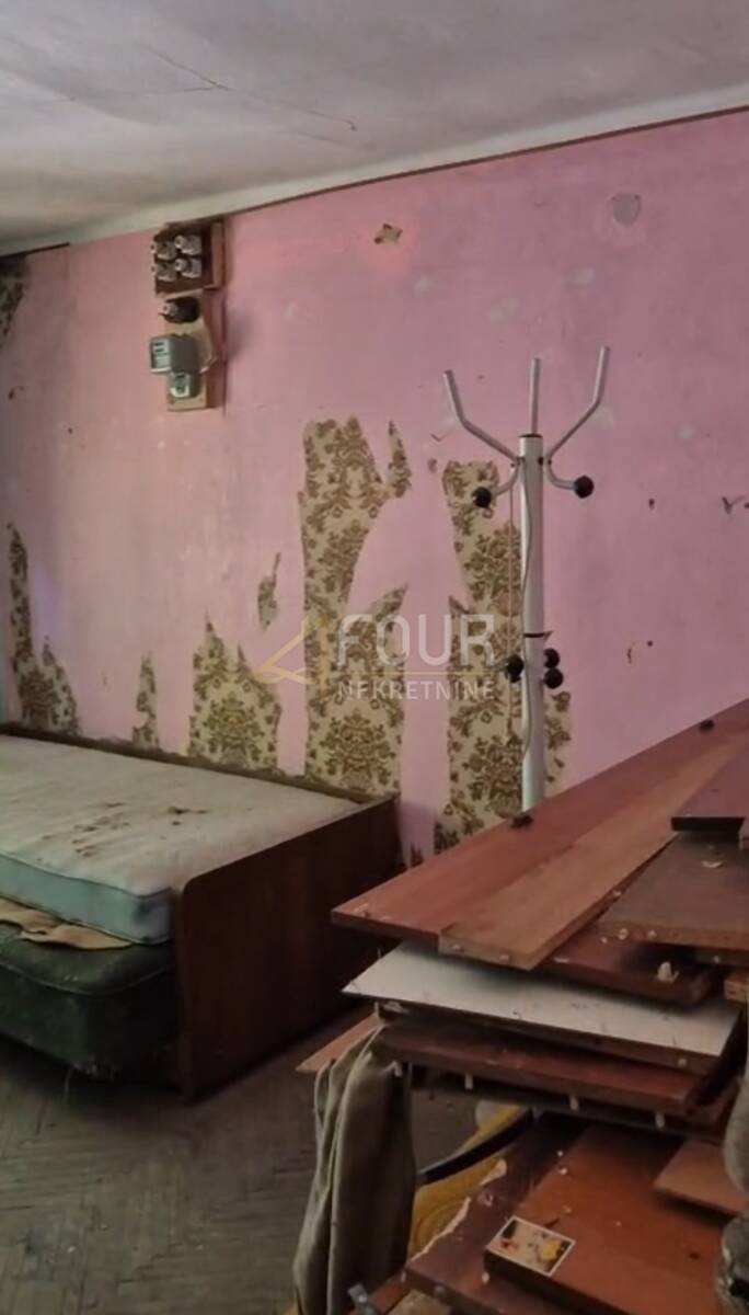 Nekretnina se sastoji od ulaznog, dugačkog hodnika koji povezuje tri prostorije, kupaonicu, terasu i spremište. Potrebna je potpuna renovacija, što budućem vlasniku pruža izvrsnu priliku za uređenje prostora u skladu s vlastitim željama i potrebama te za maksimalno iskorištavanje potencijala same lokacije.