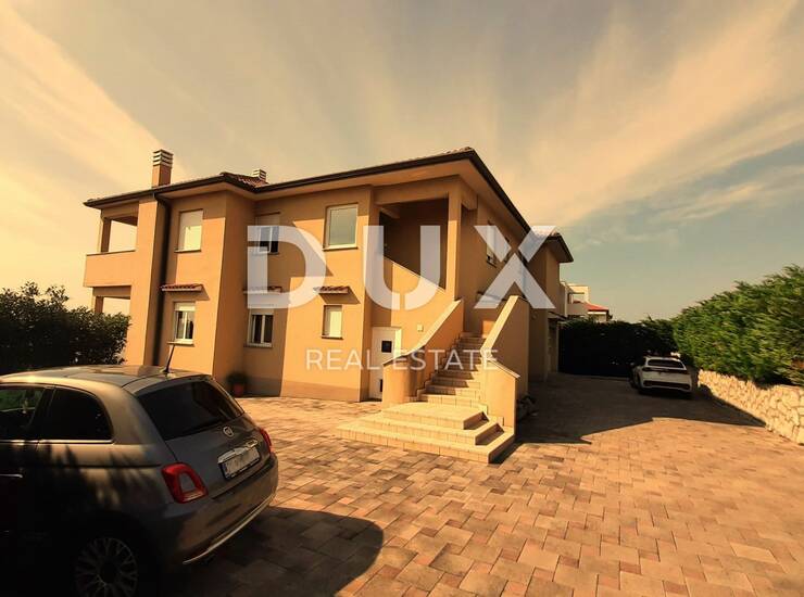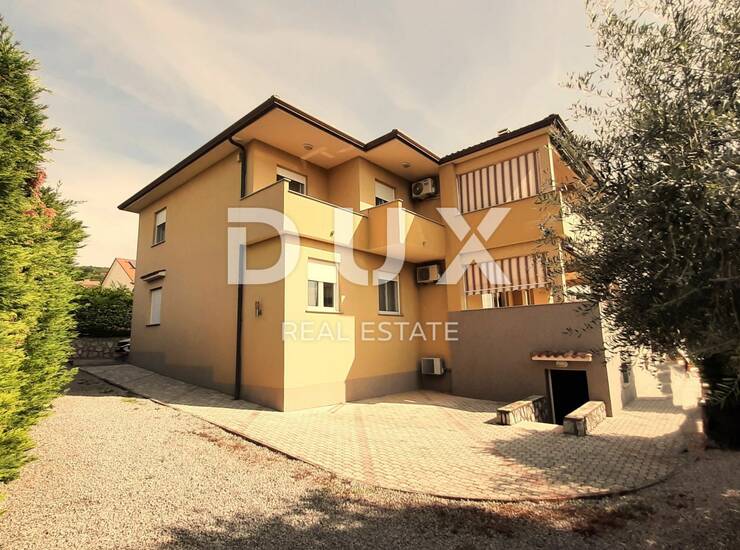 Na samo 200m od prve plaže, u mirnoj ulici smještena je ova predivna obiteljska kuća s dva stana u čijoj prodaji posredujemo. Ukupne je stambene površine 372m2 izgrađena na parceli od 882m2, okružena okućnicom od 687m2. Sastoji se od suterena u kojem se nalazi konoba 30m2, stana u pr