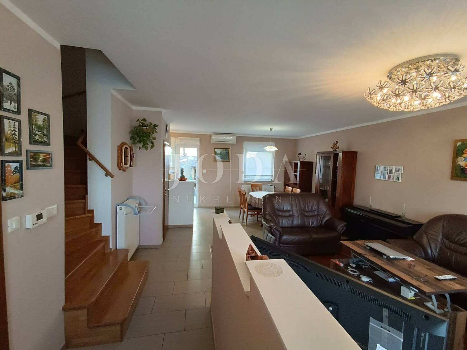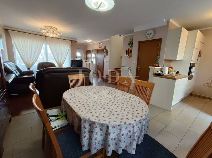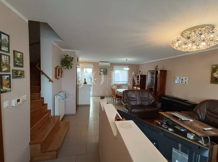 Prodajemo odličan dvoetažni stan u Kostreni blizu mora. Stan se sastoji od tri sobe i kupaone na 1. katu, te balkona sa kojega se pruža pogled na more, (iznad stana je tavan veličine 7m2), u prizemlju su garderoba, dnevni boravak i kuhinja, wc, te ostava. Stanu pripadaju 2 ograđena parkirna mjesta (priprema struje za električni auto), okućnica s prednje strane gdje se nalazi natkrivena terasa te ograđena okućnica iza objekta gdje se smjestio veliki roštilj i mjesto za druženje koje se po potrebi može kompletno zatvoriti radi veće intime (grede su već postavljene). Stan je opremljen centralnim grijanjem na plin i potpuno je klimatiziran te su režije izuzetno niske tokom čitave godine.
