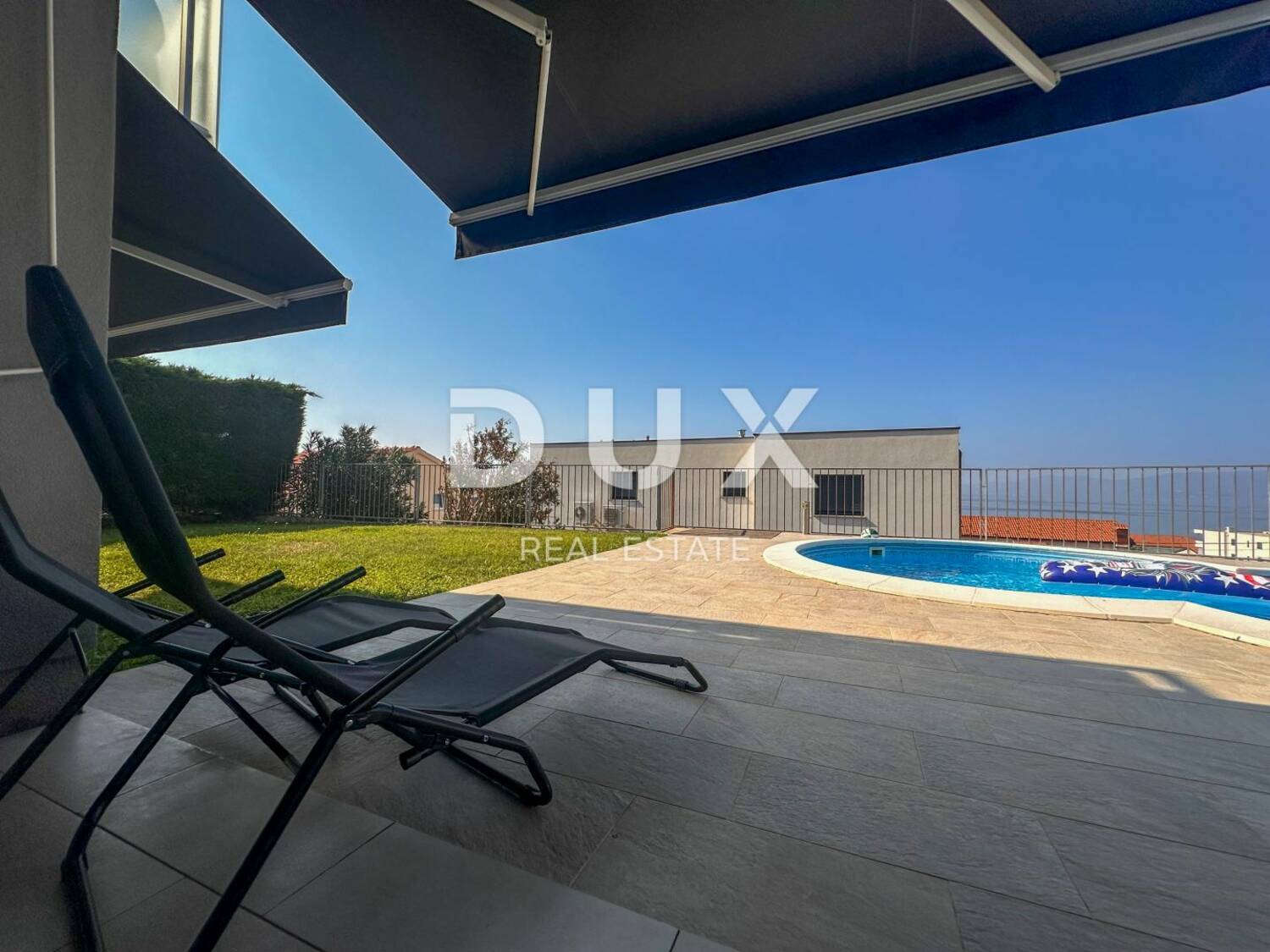 Posebna prednost ovog stana je velika okućnica koja pruža pravi doživljaj luksuza. Natkrivena terasa idealna je za uživanje u toplim ljetnim večerima, dok sunčalište i travnjak nude prostor za opuštanje na suncu. Bazen u dvorištu pruža savršeno osvježenje, a iz gotovo svih dijelova stana, uključujući okućnicu, pruža se spektakularan pogled na more i okolinu, čime se osigurava doživljaj života uz obalu.