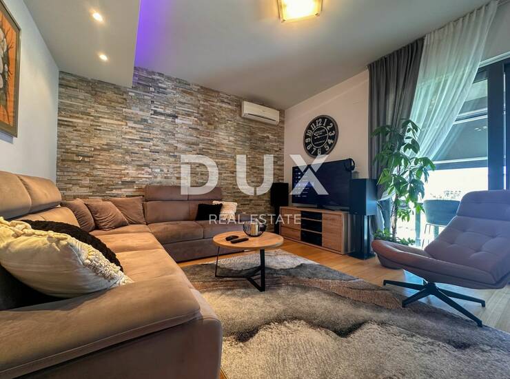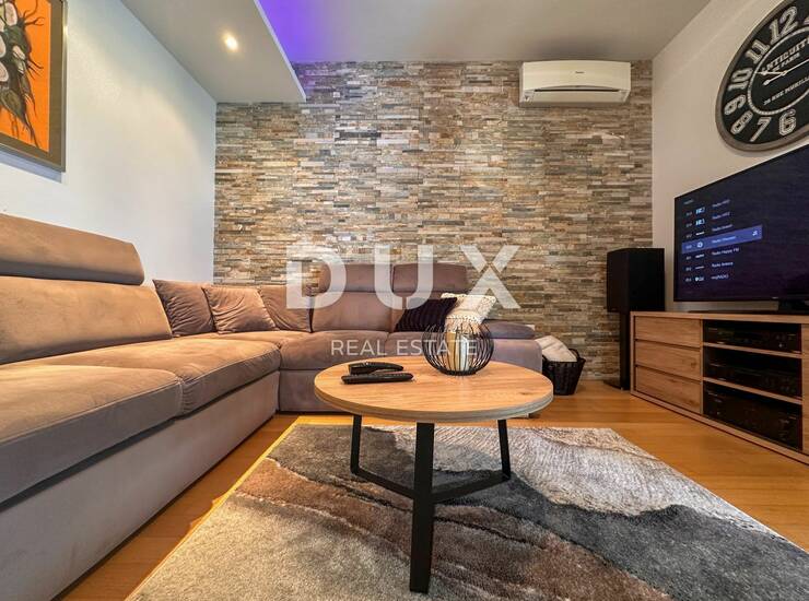 KOSTRENA, NOVOGRADNJA - DVOETAŽNI OBITELJSKI STAN S BAZENOM