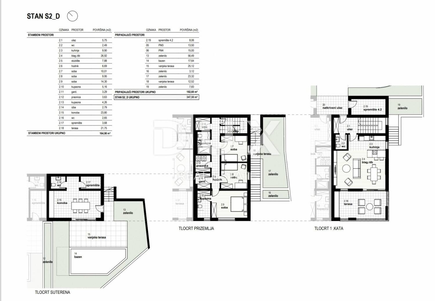RIJEKA, KOSTRENA - ekskluzivan dvoetažni stan 164,90 m2 novogradnja s prekrasnim pogledom na more i bazenom + okućnica 182.60m2 - S2-D