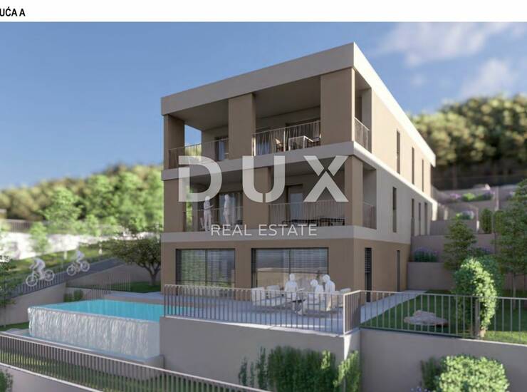 RIJEKA, KOSTRENA - ekskluzivan dvoetažni stan 209,14m2 novogradnja s prekrasnim pogledom na more i bazenom + okućnica 356,39 m2 - S2-A