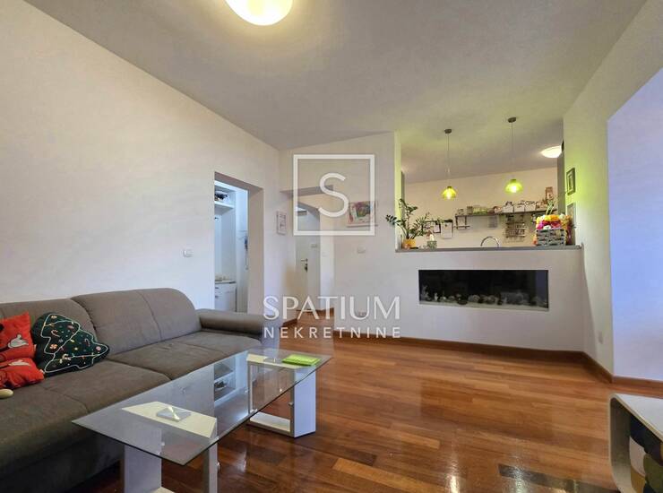 Sastoji se od hodnika, dnevnog boravka, kuhinje s blagovaonom, kupaone te dvije spavaće sobe. Pripada mu drvarnica a uz zgradu dovoljno je parkirnog prostora.